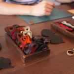 ワークショップの内容はキーホルダーの作成。革のパーツと木のパーツを選び、仕上げ作業をして組み上げていく内容です。